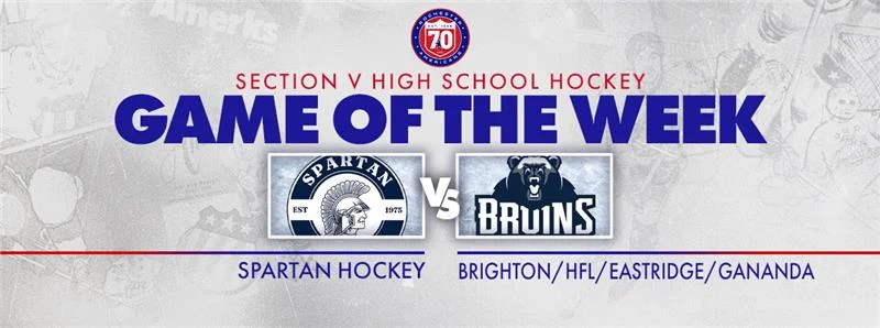The High School Game of the Week includes Spartan Hockey (7-6-0) facing Brighton/HFL/Eastridge/Gananda (2-11-1) on Tuesday, January 27 for a 5:00 p.m. puck drop at Genesee Valley.